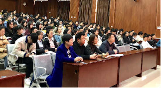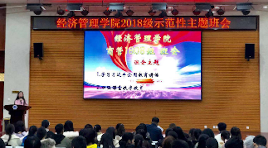 在鄠邑校区经管人文楼118召开示范主题班会。党委副书记赵海涛、部分学工干部及18级全体班干部参加活动。