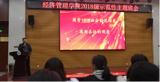 学生工作的一个重要平台,要想开好一次班会,需要班委齐心协力,班干部还要充分发挥同学的参与热情,给予鼓励与支持,让班会成为同学成长的练兵场,成为班主任与同学面对面交流的连心桥,成为同学们收获成长与友谊的坚实阵地。最后,他还向观摩班会的2018级全体班干部推荐了《马克思是对的》、《辉煌中国》、《必由之路》等视频学习资料。