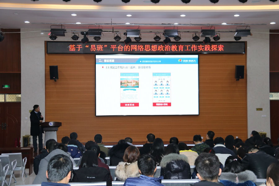 12月12日上午,学生工作部邀请陕西省高校易班发展中心办公室主任、陕西科技大学学工部部长助理陶兴旺作“网络思想政治教育工作实践探索”的专题报告。全体学工干部参加了报告会。