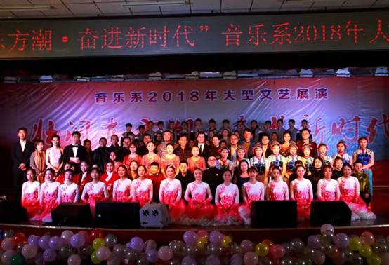 热爱舞蹈的教工风采;歌曲《Hello》/《彩虹》带给我们无限的能量,让我们勇敢前进;《石油大学赋》是由音乐系党总支副书记张伟老师原创,师生共同朗诵表达了对石油大学的无尽的情感与期望;《岁月金曲》、《京韵脸谱》、摇滚乐队的《连奏曲目》等原创节目赢得了台下阵阵掌声;《百姓记得你》和《权御天下》更是展现了我系学生在声乐及器乐方面的专业水平,表演极具感染力和冲击力,引人入胜;女生小合唱的歌曲串烧《我们的青春》和田立老师演唱的《情牵梁家河》则是用民歌唱响了我们祖国改革开放40周年所取得的进步和发展;最后晚会在大合唱《在灿烂阳光下》和校歌《辉煌明天》的歌声中圆满落下帷幕。