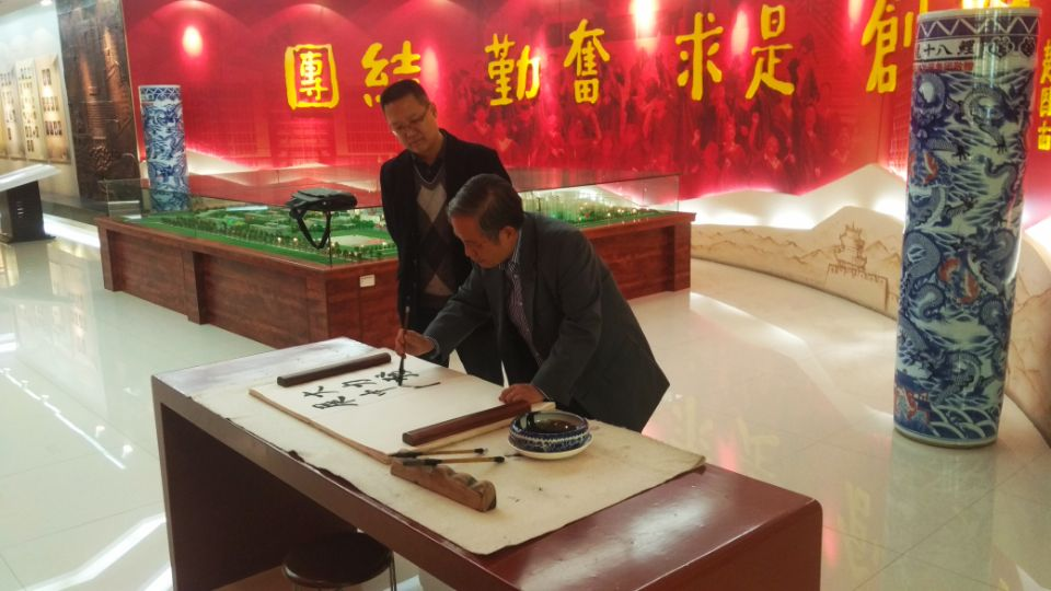 铁人馆和校史馆。参观结束后,Jerry C.Tien教授为校史馆题字。