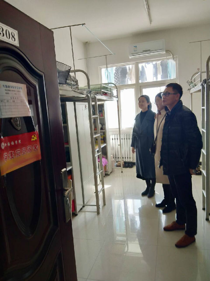 辅导员老师和学生党员对学生宿舍进行了全面检查。