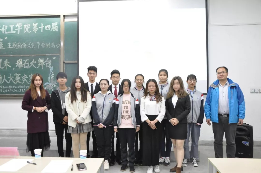 在B101教室举办了宿舍文化节系列活动之“展主持风采,耀石大舞台”主持人大赛决赛。经过前期选拔出来的9名选手参加了决赛。2018级辅导员李希,德州扑克