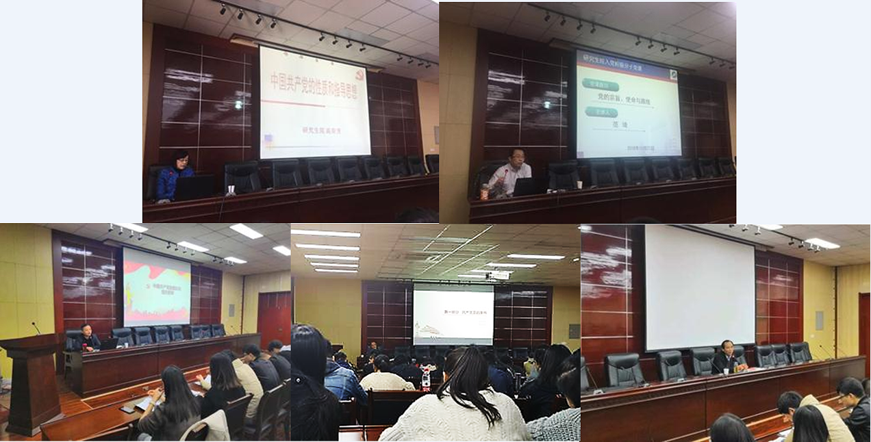 党委书记赵健、组织部副部长蔡强,研究生院党委书记高荣芳及副书记范琦,分别就党的性质和指导思想、党的宗旨和使命、党员条件和入党程序、党的组织原则、党员权利和义务等内容进行了集中讲授。
