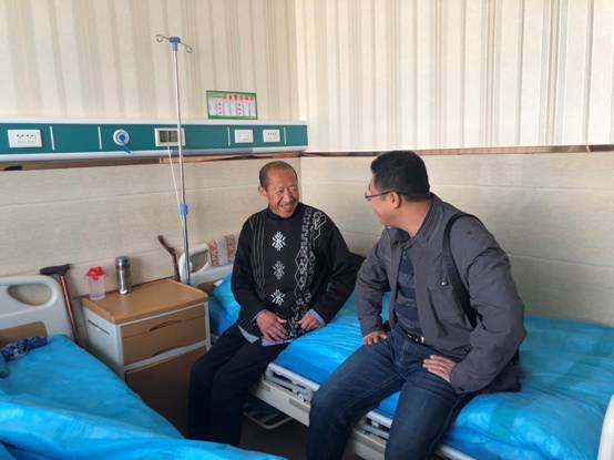 我系扶贫对象魏彦坤因腿部旧疾复发,在永平镇高新医院接受治疗,张伟副书记一行人来到高新医院看望魏彦坤同志,并给他送上五百块钱慰问金以及生活用品若干。在走访过程中张副书记细致了解他腿部恢复情况、并询问过冬燃煤储备及最近存在的生活困难,希望在音乐系的帮扶下帮助魏彦坤增强信心,健康快乐的生活。魏彦坤同志对我系的关心、帮助表示感谢,并表态尽力通过劳动改变贫困落后的情况。