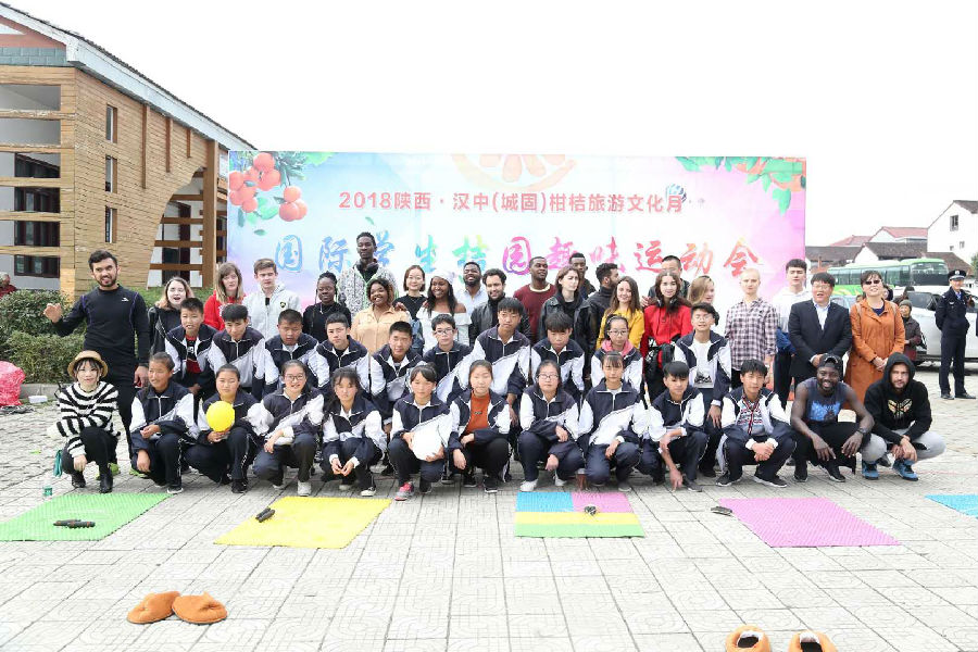 国际学生与汉中民间知名歌手参加了万国风情篝火晚会,学生们表演了啦啦操、非洲原始丛林舞、嘻哈歌曲以及现代街舞等多项节目,并与现场游客亲密互动;在14日上午的桔园趣味运动会上,国际学生与当地中学生交叉组队,共同进行了找桔子、搬桔子、趣味接力、传声筒等各种趣味比赛。双方学生体验到了互动交流的乐趣,加强了国际学生与中国学生的了解。运动会后,国际学生乘车游览了桔园景区,与当地学生一道穿梭其间拍照合影,亲自体验采摘乐趣,分享丰收喜悦。