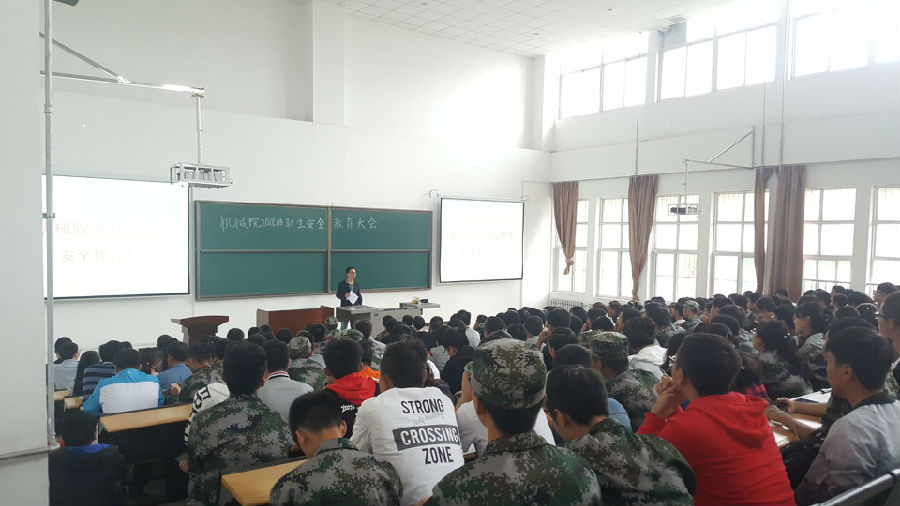 2018级在机械材料楼115教室召开新生安全教育大会,会议由辅导员主持,2018级全体新生参加。