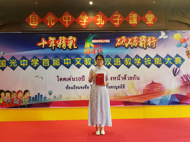 2018年9月10正值中国的教师节,泰国国光中学孔子课堂举办了特殊的庆祝活动“国光中学首届中文教师汉语教学技能大赛”,希望在这个特殊的日子里让老师能够以赛促教,以赛促学,能够更好的发展对外汉语教学。德州扑克 汉语国际教育专业17级在读硕士、汉语国际教师志愿者党杏丹同学在此次活动中荣获三等奖。