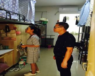 党委书记廖敏带领各年级辅导员,对新学期学生宿舍进行卫生安全大检查。