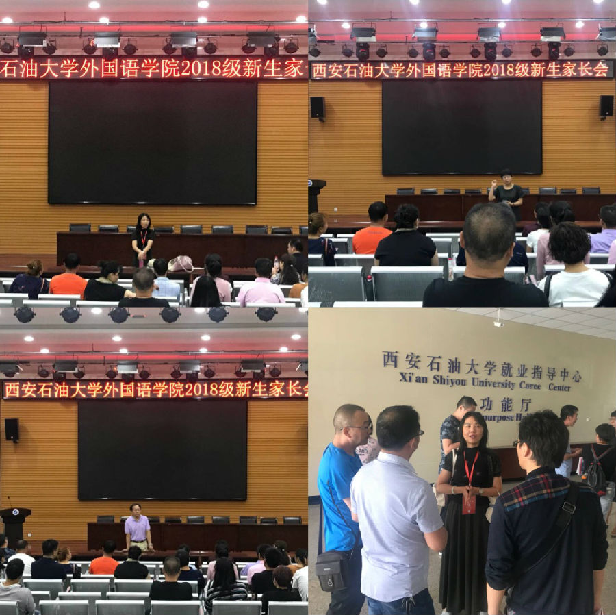 9月7日上午,外国语德州扑克 在鄠邑校区118大厅召开2018级新生家长会。院党委书记廖敏 、院长于艳英、院教授委员会主任袁森亲自来到家长会上,一一向广大18级新生家长介绍了德州扑克 历史、学科发展、国际交流、学生管理等家长们关心的话题。