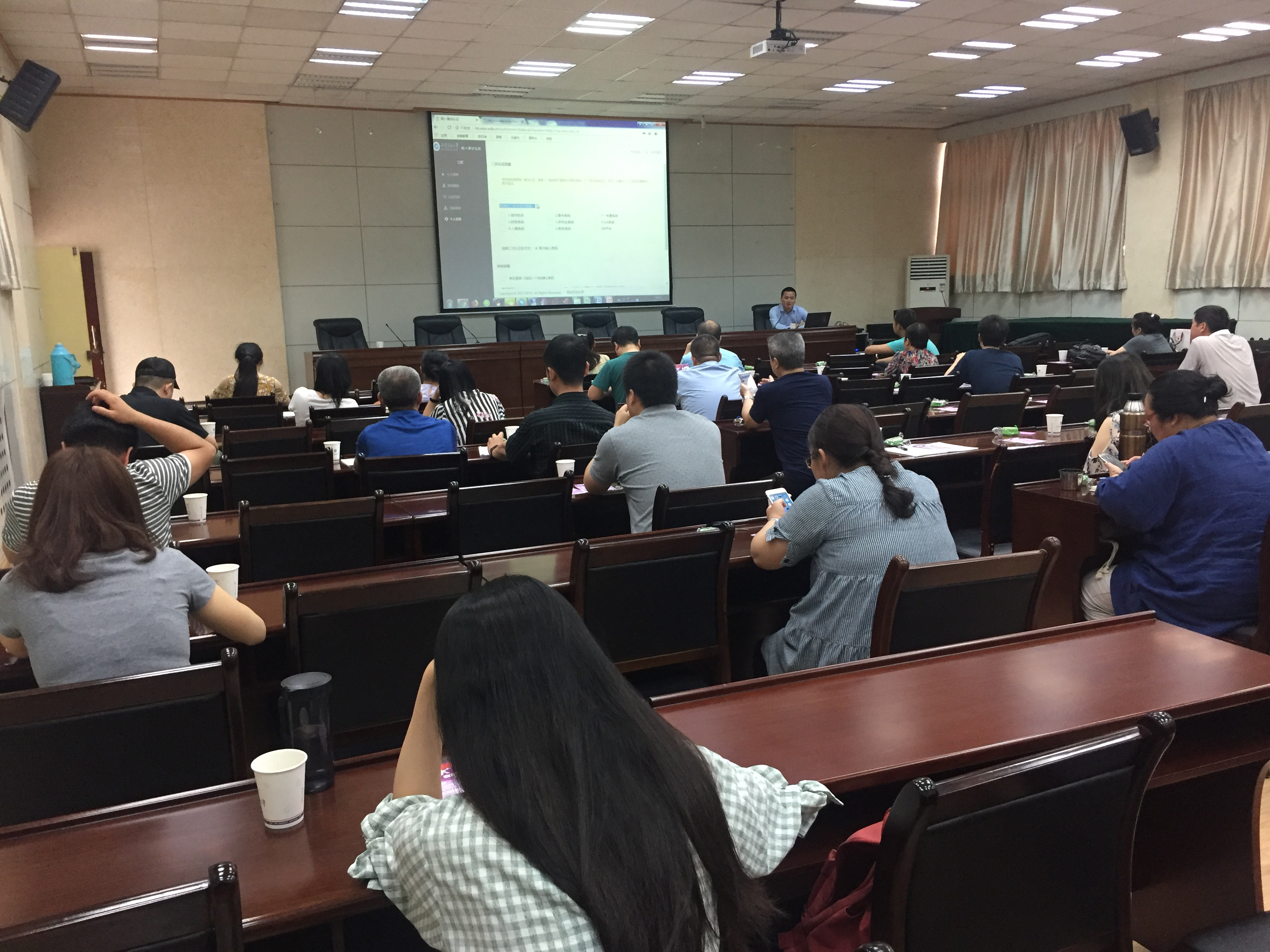 雁塔校区会议中心第三会议室举行数字校园基础平台和移动校园平台使用培训会。本次培训会由信息中心副主任王学龙主持,各院系、机关、教辅等二级单位的信息管理员参加了本次会议。