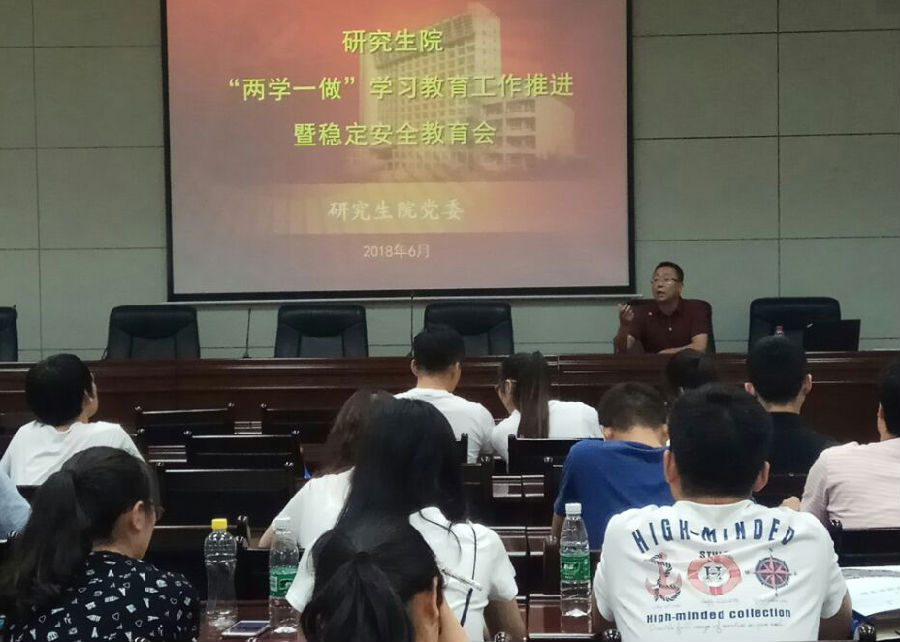 为了进一步加强研究生党支部建设,充分调动和发挥研究生党员干部的模范带头作用,深入推进“两学一做”学习教育常态化,扎实开展研究生稳定安全教育工作,研究生院党委于2018年6月13日下午在雁塔校区第三会议室召开了“两学一做”学习教育工作推进暨稳定安全教育会,研究生院党委书记高荣芳、副书记范琦,组织员高黎、辅导员周钰桐,各研究生党支部书记、支委成员,研究生各学科专业年级负责人等80余人参加会议。