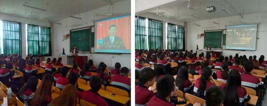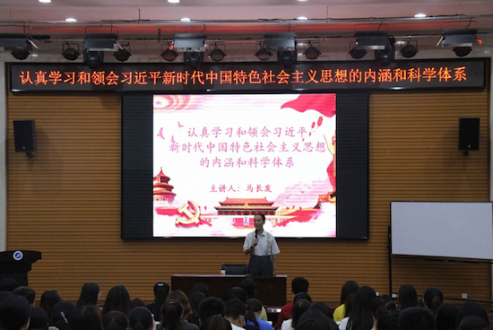 中心组、教工党员、学生党员认真学习领会习近平总书记讲话精神,使马克思主义思想进课堂、进班级、进支部、进社团、进宿舍、进网络、进实践。