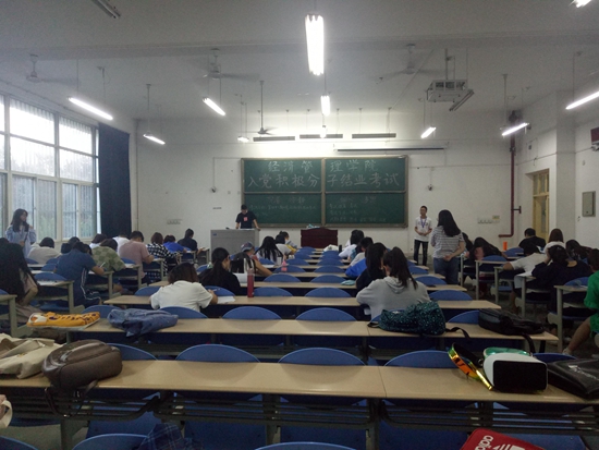 第四十一期入党积极分子培训班结业考试在鄠邑校区教学B区101、102、103教室顺利进行。