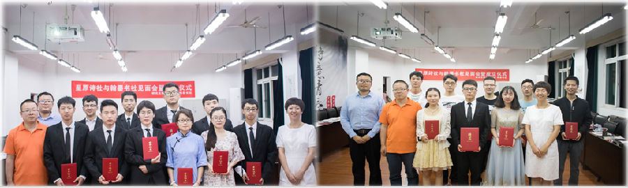 书香校园建设、营造良好校园文化氛围、弘扬中国传统文化做出更多积极贡献。研究生院团委书记高黎为两位社长颁发聘书,研究生院2017级辅导员、研究生会指导老师周钰桐,思想教育与管理办公室老师倪永良为两大社团授旗。