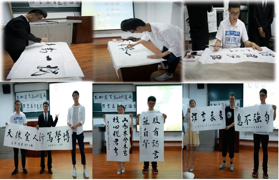 在诗词书画竞猜环节,生动有趣的“逛诗园”、诗句大比拼、书画知识竞猜活动将与会人员带入诗词的世界和文化的海洋。“七彩园”、“百花园”、“动物园”、“数字园”、“地名园”、“乐器园”、“人物园”、“四季园”诗句大比拼等独特新颖的竞猜游戏令参赛者耳目一新,现场抢答气氛热烈。翰墨书社社长李睿哲在书画知识竞猜中向与会人员介绍了丰富的书法艺术知识,同时带领翰墨书社成员现场执笔,挥毫泼墨,为竞猜环节优胜嘉宾送上书法作品作为留念,“腹有读书气自华”等佳作供不应求,不仅使与会人员在诗词书画知识上有了进一步的学习,同时也感受到了传统文化的魅力。