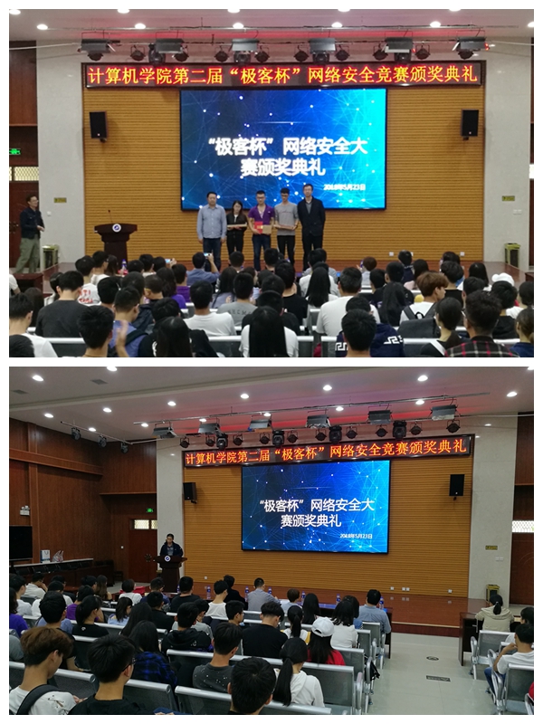 “极客杯”网络安全大赛颁奖典礼在三号院系楼118报告厅举行。计算机德州扑克