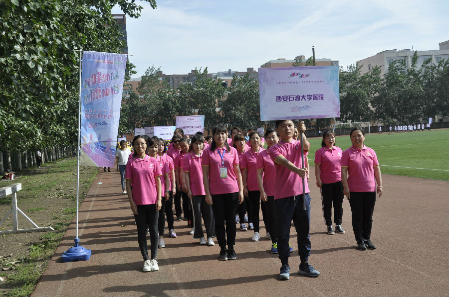 5月11日上午,为庆祝第107个国际护士节,校医院院职工在崔广志院长的带领下参加西安雁塔区卫生与计划生育局举办的庆祝“5.12”护士节运动会。