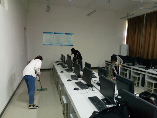 党工办组织第五期党员发展对象在鄠邑校区经管人文楼开展“向优秀党员看齐,争做校园模范”义务劳动。