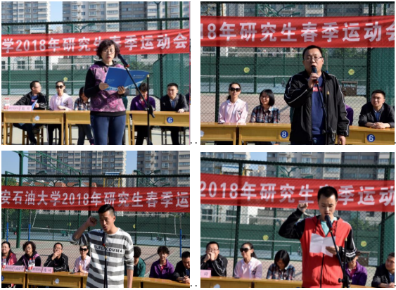 当日上午,研究生运动会开幕式在雁塔校区篮球场举行,研究生院党政领导,研究生院全体教职工,全校研究生代表、运动员裁判员代表等近500人参加。研究生院党委书记高荣芳致开幕辞,祝贺研究生运动会的顺利召开,鼓励研究生关注校园体育文化,展现良好体育精神风貌,并为运动健儿加油。研究生院党委副书记范琦宣布研究生春季运动会开幕。裁判员代表经管类17级研究生孔祥超、运动员代表材料类17级研究生赵飞分别宣誓后,比赛正式开始。