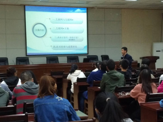 讲座从“互联网+”的概念、“互联网+”大赛的要求、创业计划书的撰写及成果转化的注意事项等四个方面展开。首先详细诠释了“互联网+”的概念,提出“互联网+”以移动互联网为主,是传统行业与互联网的融合再创新。其次从大赛的目的入手,介绍了大赛的要求及参赛作品的评分标准。之后通过案例分析的方式,详细阐述了商业模式的概念,并讲解了创业计划书的写作要点。最后介绍了成果转化的注意事项。