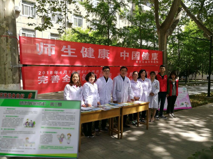 师生健康意识,校医院4月8日在雁塔校区开展以“全民健康覆盖:每一个人,每一个地方”为主题的健康教育宣传活动。