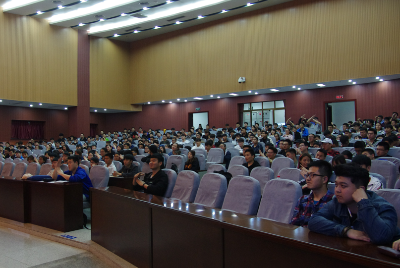 2015级求职礼仪专题培训会在弘石报告厅举办,400余名学生参加培训,辅导员邵小康、欧红娟主持。