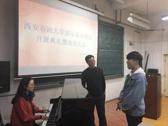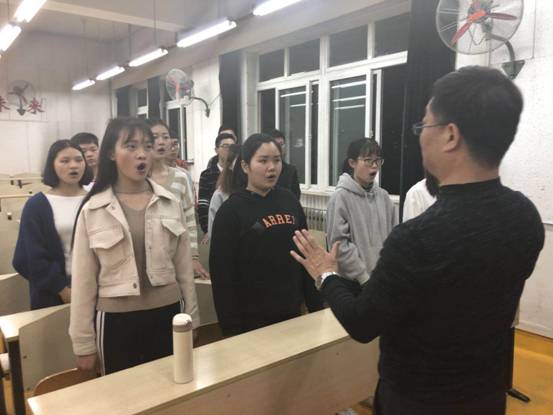 最后,在吕澄老师的钢琴伴奏下,由周伟教授给合唱团进行第一次授课,并为每一位同学试音、分声部,同学们在周伟教授的指导下,同学们热情高涨,积极配合,圆满完成了第一次合唱团培训。