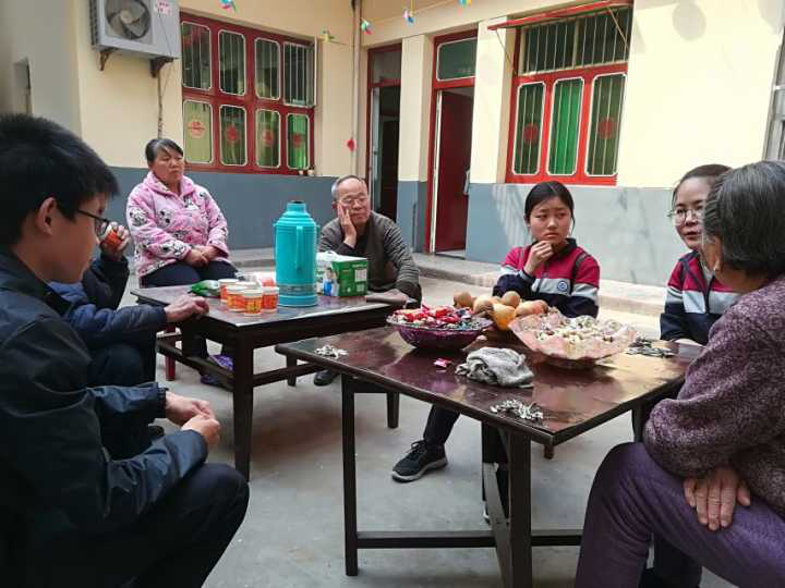伴随着大家的欢声笑语,很快就到达了目的地。走进文义村,受到了老年协会会长热情地招待。在这些孤寡老人之中,有六十年党龄的老党员,有教学三十载的老教师,有部队上的老干部,也有勤勤恳恳劳作一辈子的农民……他们给同学们讲述了发生在他们身上真实的故事,与同学们分享他们人生旅途中的酸甜苦辣,并对同学们谆谆教诲,同学们也给老人讲述了如何科学地进行自我照顾,以及帮老人做力所能及的家务农活。在与老人的交流中,同学们真切地感受到老人们那个年代生活的艰辛以及自己身处如今社会的幸福。