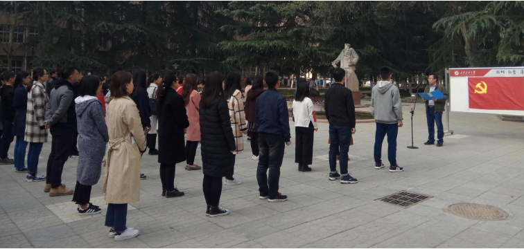 为扎实推进“两学一做”学习教育常态化制度化,增强新党员的党性意识,3月22日上午,研究生院党委在雁塔校区铁人广场为新党员举行了入党集体宣誓仪式。研究生院党委副书记范琦、组织员高黎及2017年底发展的110名研究生预备党员参加仪式。