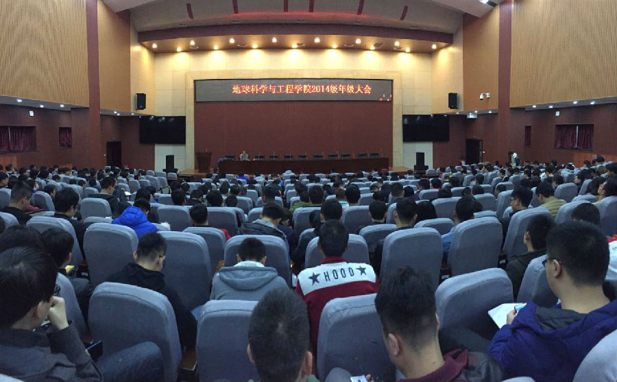 2014级在鄠邑校区弘石学术报告厅召开年级大会,辅导员李化杰老师主持会议,2014级全体同学参加了大会。