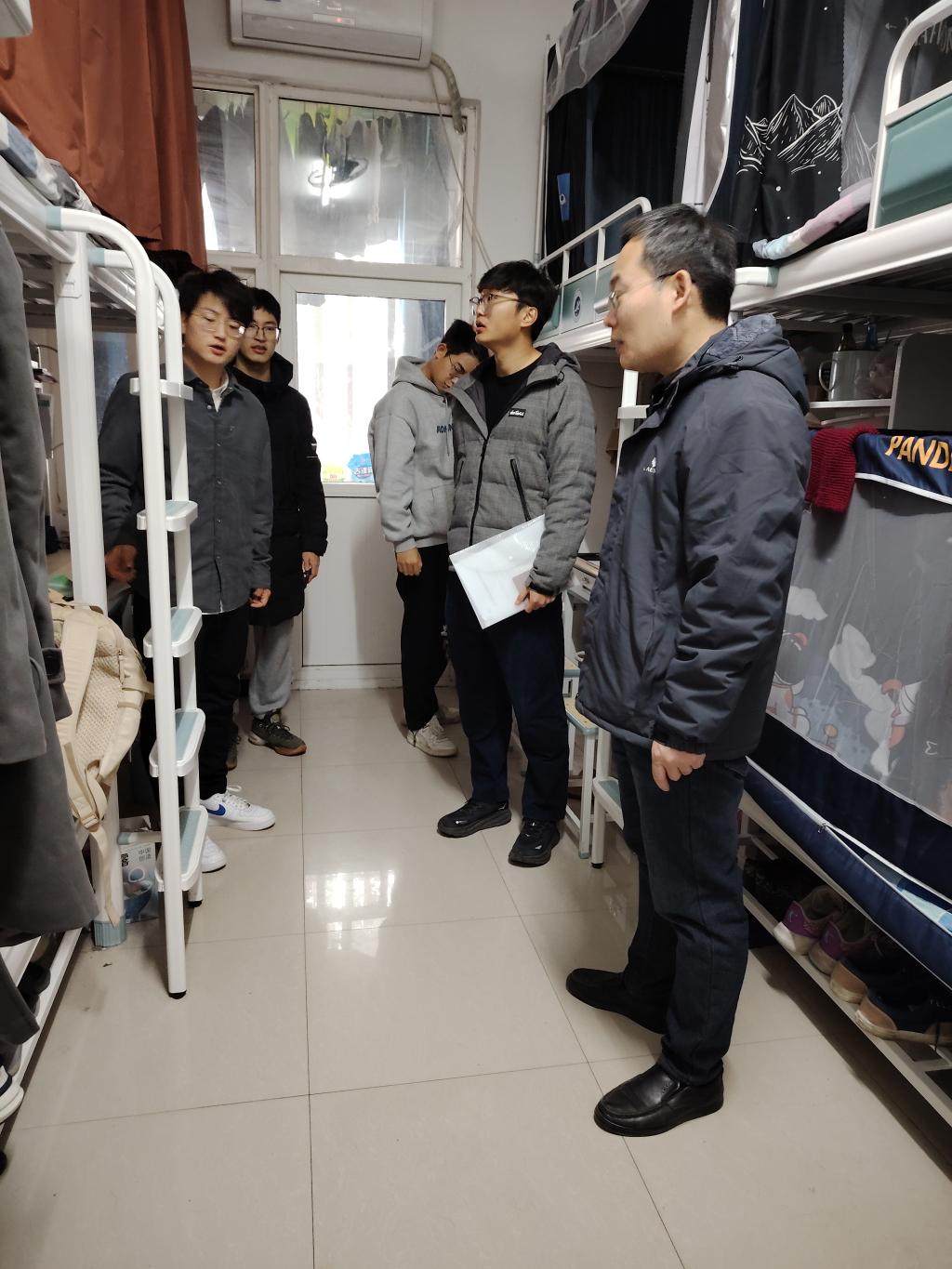 党委副书记张建高带领全体学生工作干部深入各年级宿舍,开展宿舍安全检查工作。