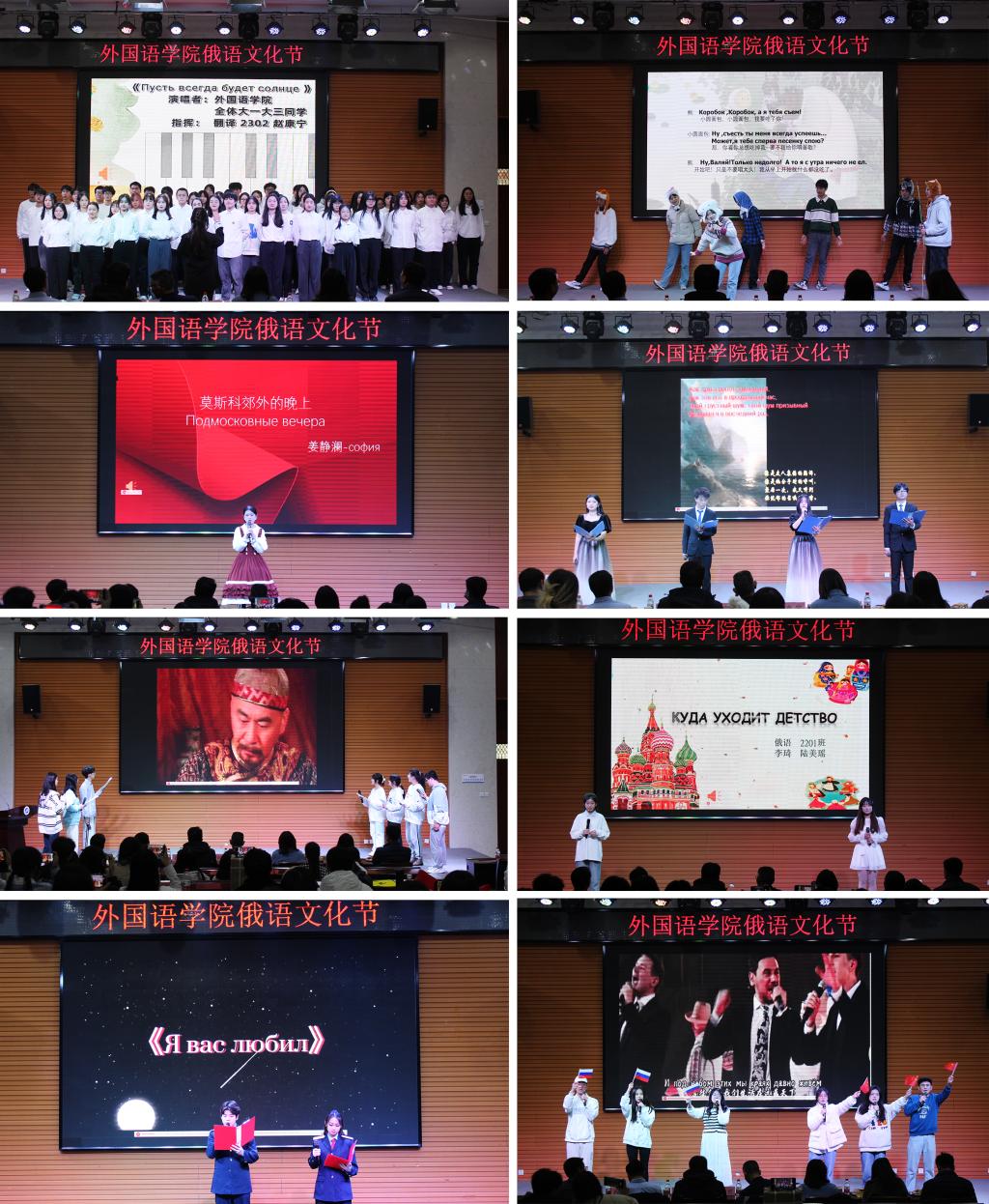 的学生带来的诗朗诵《我曾经爱过你》以及俄语歌曲《小闹钟》让大家眼前一亮;诗朗诵《假如生活欺骗了你》将普希金语言的魅力展露无遗;汇演在俄语专业2021级学生带来的歌舞剧《冬日》中落下帷幕。