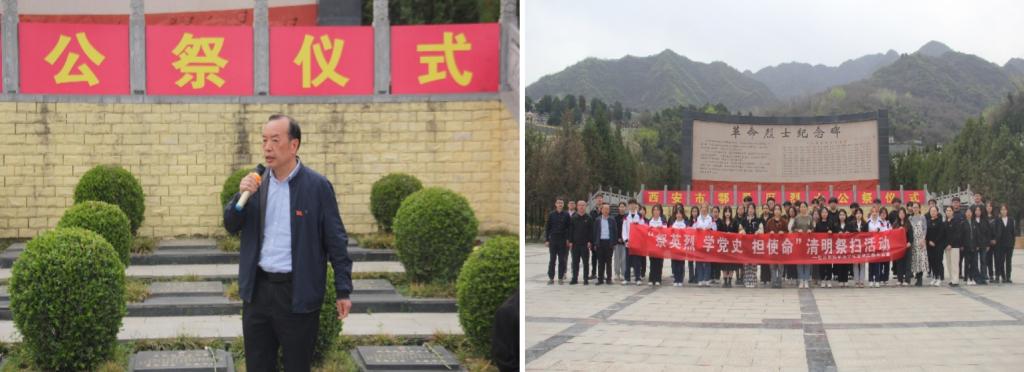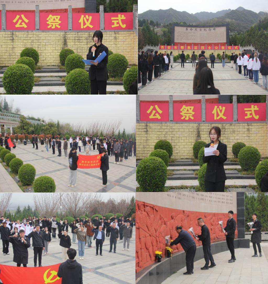 英魂不泯,浩气长存。学生党建工作办公室主任程子墨简要介绍了鄠邑区金南山烈士陵园,园内庄严肃穆,广场四周、丰碑耸立,台阶两侧、青松挺立,革命烈士纪念碑上承载着高望重、朱成义等168位英魂的遗志,他们用铮铮铁骨捍卫国家信仰,用血肉之躯挺起民族脊梁,他们的热血洒遍华夏大地,卓著功勋永垂不朽。深切缅怀革命先烈,全体成员排队向烈士纪念碑献花,缓步绕行纪念碑一周,追思革命先烈的丰功伟绩,致以崇高敬意。学生党建工作办公室指导老师王业林带领全体党员同志再次举起右拳,重温入党誓词,庄严宣誓。学生代表常笑笑表示,革命先烈不惜以血肉之躯换来中国之未来,今日吾辈青年当打牢专业基础、提升综合能力、主动担当作为,谱写出新时代青年马克思主义者的奋斗故事。