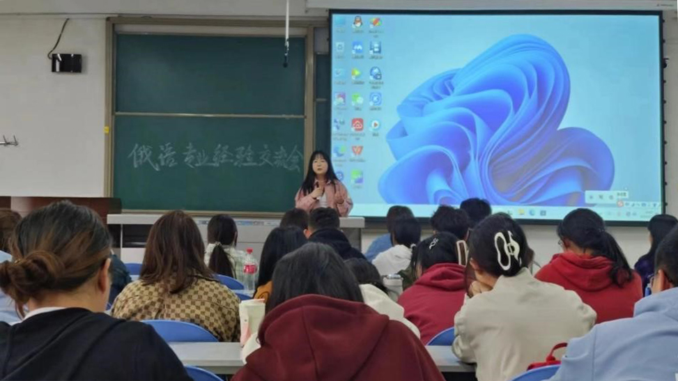 关于推进毕业生就业工作的安排,加强俄语专业学生对升学和就业形式的了解,帮助学生做好学业及职业规划。4月2日,俄语专业在鄠邑校区A302教室举办就业考研经验分享交流会,俄语专业优秀在校生杨奕聪、孙芳茹、张静叶、薛思琪以及优秀毕业生郭丽玮应邀分享经验。会议由俄语系系主任张艳主持。俄语专业教师李娜、贾永宁、孙婷、郭静远及近200名本科生参加会议。