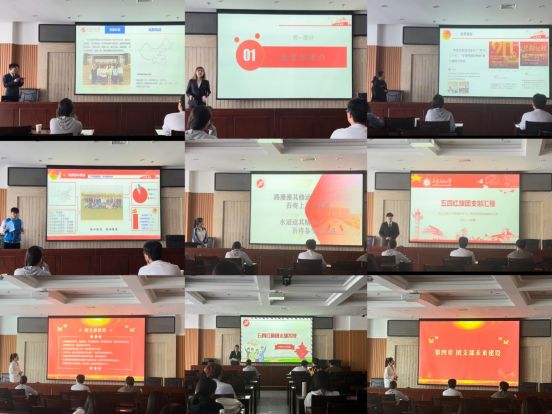 2023年度“五四红旗团支部”评优答辩会在鄠邑校区图书馆第一会议室、第二会议室举行,全校共有35个团支部进入现场答辩环节。校团委干事李政、王泽文和部分团学干部担任评委。
