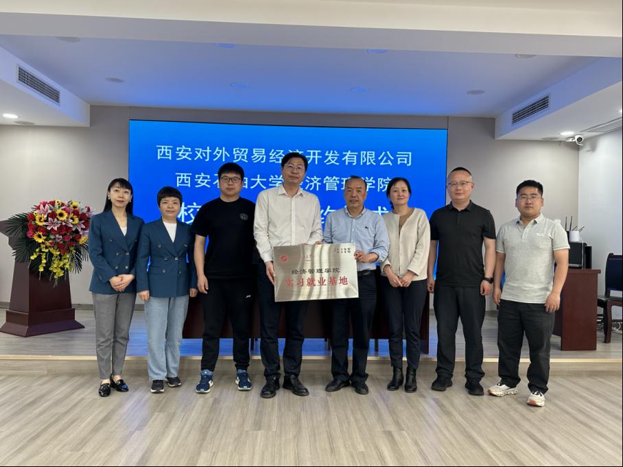 座谈会上,西安对外贸易经济开发有限公司副总经理马亚军详细介绍了企业的发展历程、合作理念和外贸业绩等情况,并希望双方进一步加强校企合作,促进互促融合发展。谈建勤表示,开展访企拓岗促就业活动是强化产学研合作的重要途径,也是提升人才培养质量的突破口,更是促进毕业生高质量就业的有力抓手。他希望通过此次走访,在人才混合式教学、理论与实践双向互动培养方面持续发力,为毕业生开拓更多的就业岗位资源,同时也为在校生挖掘更多的实习岗位资源。会上,双方进行了共建“大学生实习就业基地”的揭牌仪式和合作签约仪式。