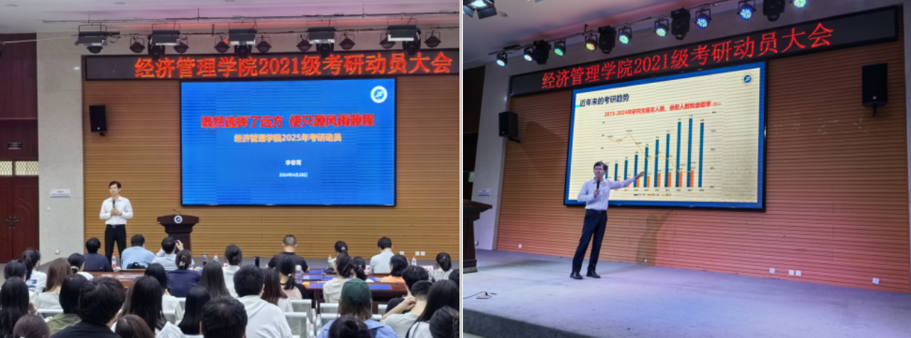 在鄠邑校区就业指导中心多功能厅举办2021级考研动员大会。经济管理副院长李春霄,工商管理学科负责人裴旭东,会计学系副教授郑蕊,管理科学与工程系主任侯珂,企业管理系主任杨晶,人力资源管理系主任肖焰,经济系主任毛毅,2021级辅导员刘清及全体意向考研学生参加本次动员大会,大会由经济管理德州扑克