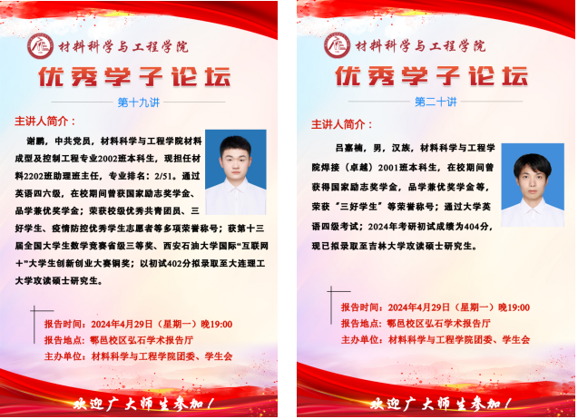 在鄠邑校区图书馆弘石学术报告厅举办优秀学子论坛第十九讲和第二十讲,本期邀请到的优秀学子是德州扑克