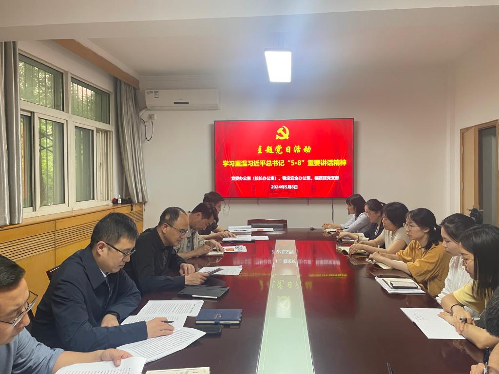 在习近平总书记“5·8”重要讲话发表十周年之际,5月8日下午,党委办公室(校长办公室)、档案馆党支部在雁塔校区行政楼224会议室开展学习重温习近平总书记“5·8”重要讲话精神主题党日活动。党委办公室(校长办公室)、档案馆党支部全体党员参加会议。会议由支部书记赵健主持。
