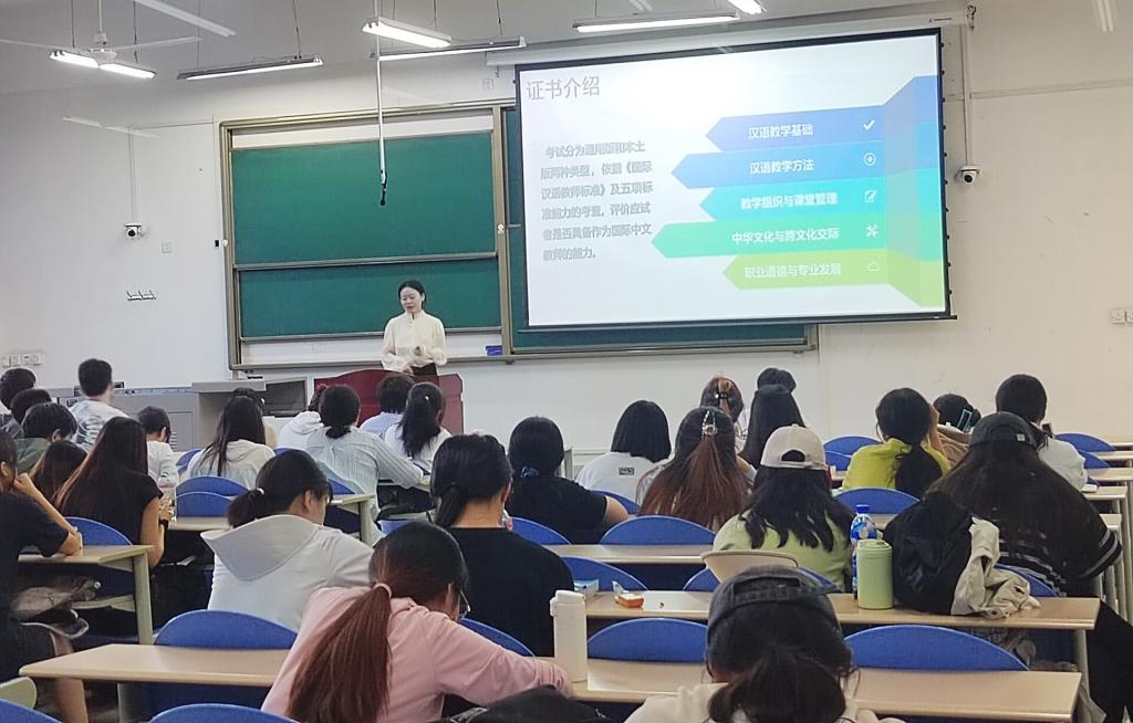 西安外国语大学考试认证中心张青及工作人员一行,为学生带来了一场关于国际中文教师证书考试及孔子德州扑克