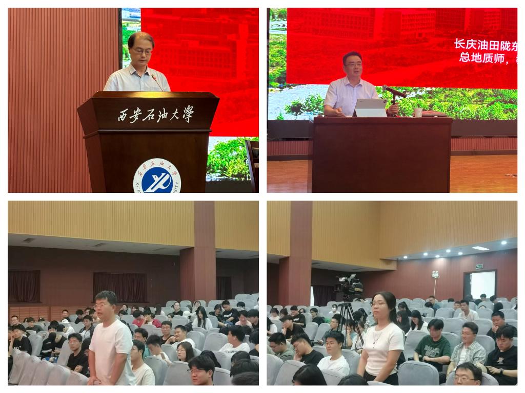 完成,是长庆油田陇东油气开发分公司常务副经理、总地质师、教授级高工、甘肃省领军人才。报告会上,雷启鸿校友从世界石油工业的发展谈起,他说到,自工业革命以来,石油的用途从照明逐渐演变为燃料,现如今已广泛应用于各个领域,作为现代工业的血液,石油具有举足轻重的战略地位。在全球化日益加深的今天,各国石油产量需求更加旺盛,面对新形势新挑战,加快构建现代能源体系,必须坚持以习近平新时代中国特色社会主义思想为指导,深入贯彻落实“四个革命、一个合作”能源安全新战略,将油气行业和新能源行业发展结合,提升国际竞争力,推动能源生产和消费结构不断优化。随后,雷启鸿校友结合自己从业24年的工作经历,向研究生们提出几点希望:一是胸怀理想,努力作为;二是德才兼备,努力修为;三是保持学习,勤于思考;四是守正创新,注重合作。最后,他用习近平总书记在党的二十大报告中的讲话寄语广大研究生“当代中国青年生逢其时,施展才干的舞台无比广阔,实现梦想的前景无比光明。”他希望研究生们能将个人追求同国家需要和人民利益保持一致,成就更有意义的精彩人生。