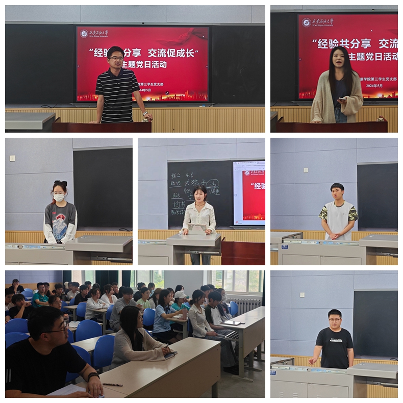各学生党支部组织开展“经验共分享,交流促成长”主题党日活动,活动由各学生党支部书记主持,2024届考研就业典型及全体2021级学生参加。