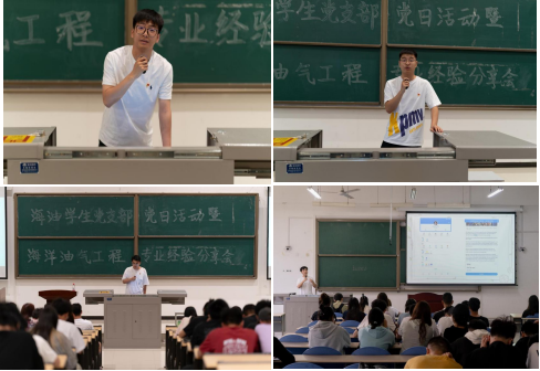 为我们提供了这么一个‘传帮带’的交流平台,我非常荣幸能把大学四年以来的学习经验和体会分享给学弟学妹们,希望能帮到他们。”海油学生党支部书记陈科棋说。