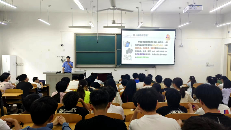 郑昊警官结合近期发生在校园里的大学生电信网络诈骗典型案例,从诈骗手段、个人信息保护、反诈措施、培养警惕意识等四个方面对学生群体中高发的刷单返利、游戏充值、虚假贷款等诈骗形式进行了详细的讲解,引导同学们在日常学习生活中提高警惕,增强识骗、防骗意识和能力。