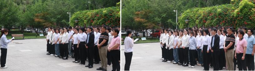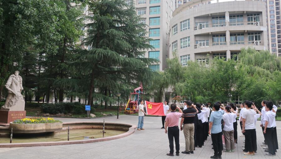 在毕业生文明离校之际,2021级研究生党支部以党纪学习教育为主线,进行“石油精神”“铁人精神”再教育,做好离校前各项工作,组织了本次主题党日活动。活动开始,全体党员在赵云天同志的带领下面向党旗,在铁人雕像前重温入党誓词,进行庄严宣誓。