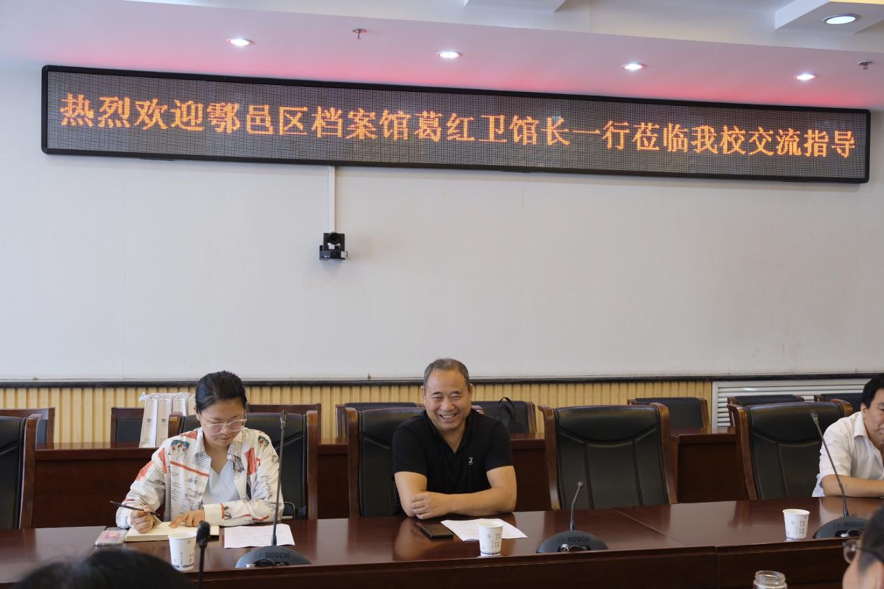 档案馆的热情接待表示衷心感谢。他提到,此次交流座谈是鄠邑区档案馆首次走访高校,是此次国际档案宣传日活动将双方紧密联系在一起。鄠邑区档案馆是区委直属事业单位,主要职能是档案收集、保管和利用。区档案馆扎实开展文书档案、重大活动档案接受工作,做到档案应收尽收。他希望,两馆在档案业务管理、档案史料挖掘、档案查阅利用、数字档案馆建设等方面形成长效互动。
