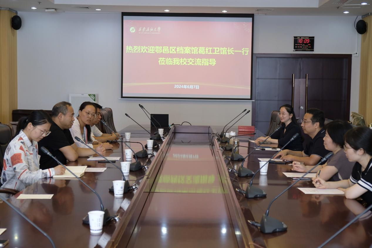 档案馆调研交流。校档案馆馆长马超及全体工作人员参加座谈会,座谈会在鄠邑校区图书馆第二会议室召开。