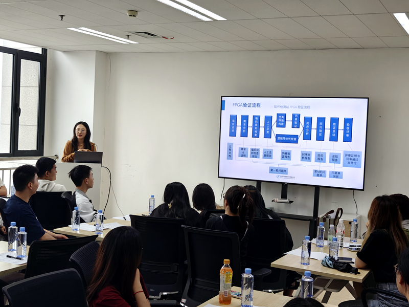 马浩波就FPGA技术的背景、发展现状、未来趋势、人才需求和职业发展进行了详细的讲解,与会人员对FPGA技术有了更全面的了解。牛悦彤分享了自己入职以来的工作和生活情况,着重讲述了一个职场小白成长为可以独当一面的项目负责人的过程。在随后的互动环节,包显康就同学们关心的问题进行了一一解答,并与11名同学达成了初步的就业意向。