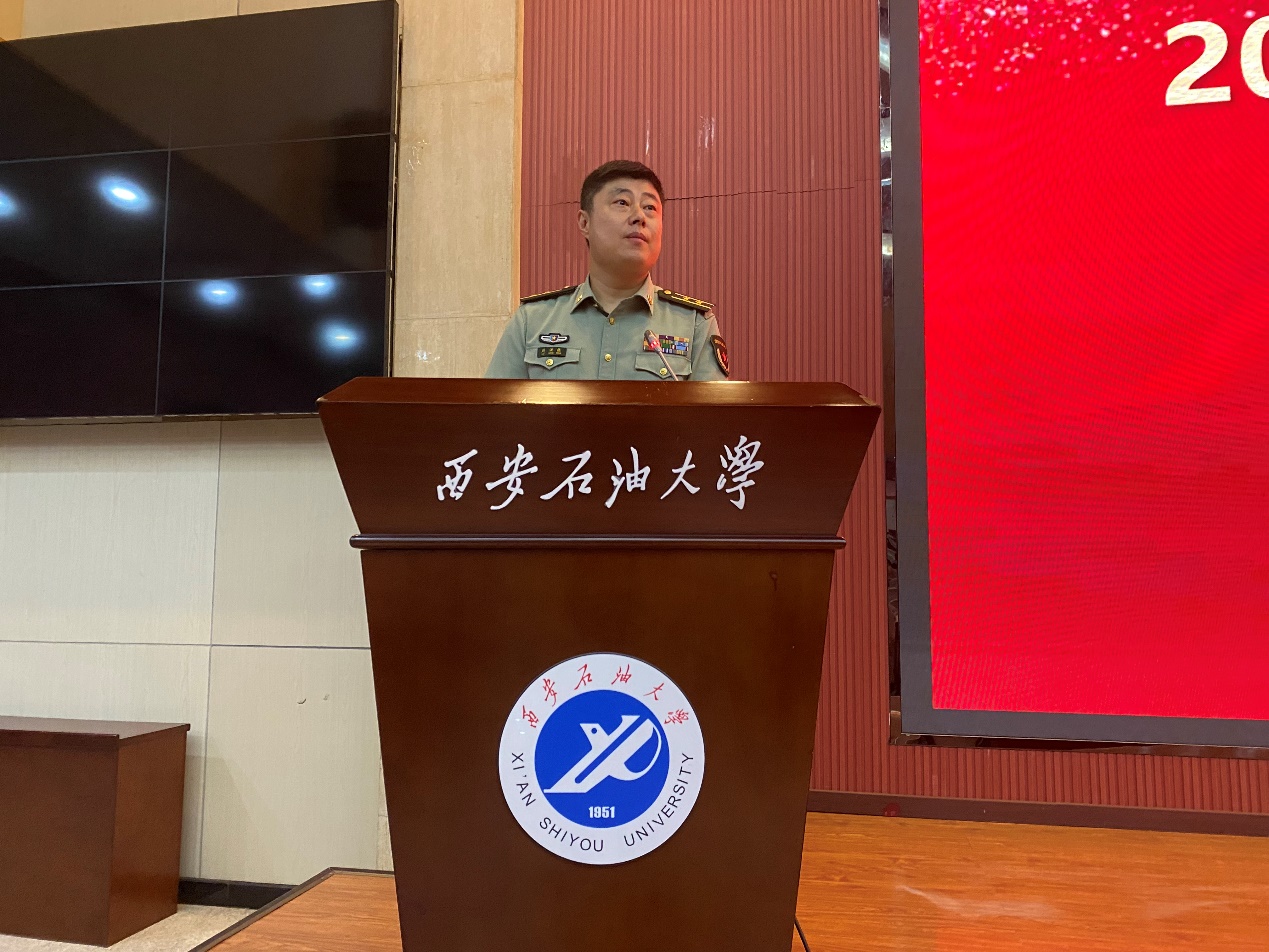 鼓励同学们投笔从戎彰显青春本色,励志建功军营实现强国梦想,希望同学们积极响应祖国召唤参军入伍,把爱国之心化为报国之行,为西石大有志青年树立新榜样。